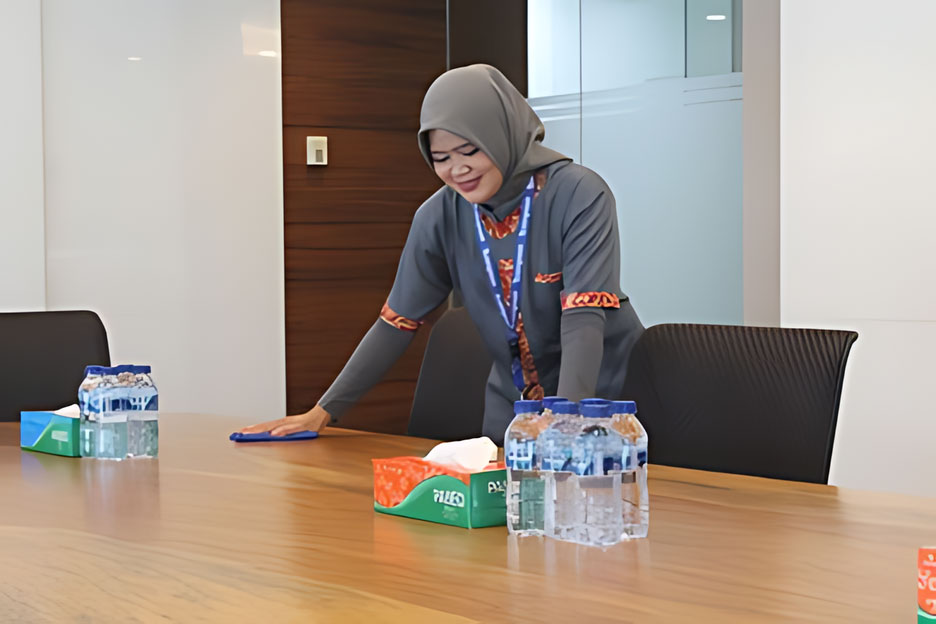 - Pembersihan Harian: Kami menjaga kebersihan kantor Anda setiap hari, memastikan ruang kerja dan semua area kantor Anda selalu rapi dan higienis.